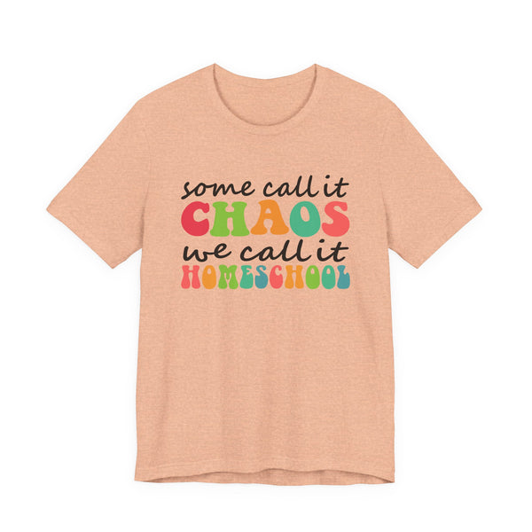 Light, breathable, and built for everyday movement — this soft crew tee carries a warm, playful message for anyone living the homeschool life. Bright, retro-inspired lettering reads “some call it CHAOS we call it HOMESCHOOL,” a cheerful little badge of solidarity you’ll reach for when mornings are loud and afternoons are full of projects. Wear it during kitchen-table lessons, park outings between subjects, or slow weekend mornings with coffee and crayons. The fabric drapes cleanly thanks to side seams and a retail fit that layers easily under sweaters or over leggings. Thoughtfully made with tear-away labels and shoulder tape to hold shape, it’s comfortable enough for long days and fuss-free for the whole family rhythm.